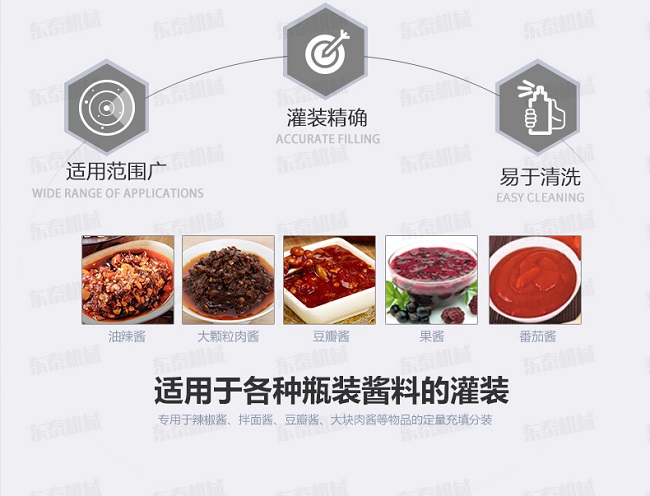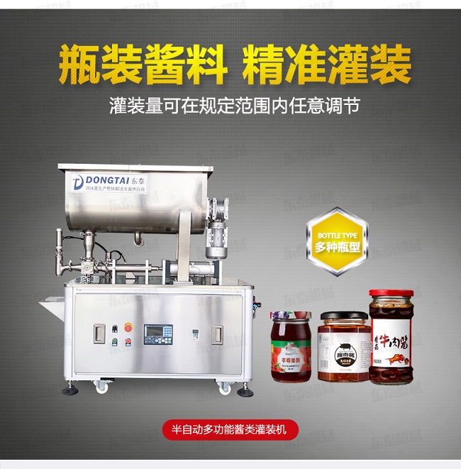辣椒醬灌裝機是由我公司自主研發(fā),臥式攪拌,可以很好的解決大顆粒物料灌裝過程中油料分離過快而導(dǎo)致的灌裝誤差大等難題。主要適用于粘稠醬料,如麻辣醬、香辣醬、牛肉醬、豆辨醬、黃豆醬、豆豉醬等醬料產(chǎn)品。在包裝過程中,海鮮醬灌裝機可以實現(xiàn)產(chǎn)品從原料進入到包裝機械開始,經(jīng)過一些列生產(chǎn)活動構(gòu)成的路線,從而達到無人化自動包裝。如果您有需要,可以和我們聯(lián)系