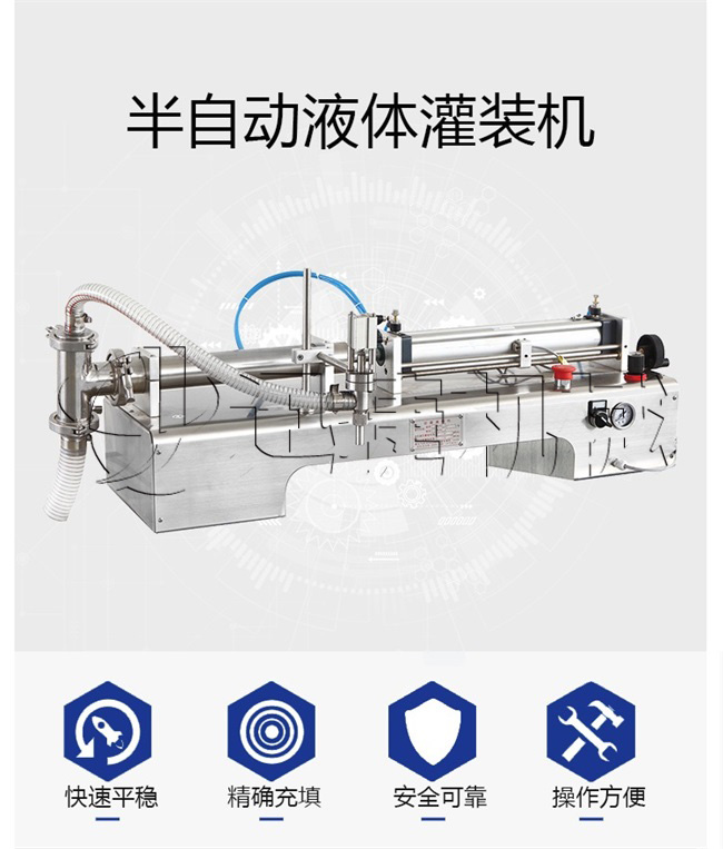 半自動液體灌裝機(jī)有單頭、雙頭液體灌裝機(jī)兩種,它適用于日化行業(yè)、醫(yī)藥行業(yè)、食品行業(yè)、油墨行業(yè)和涂料行業(yè)的液體灌裝,此小型液體灌裝機(jī)設(shè)計合理,機(jī)型小巧,操作方便,是外各個中小型企業(yè)灌裝的幫手。。